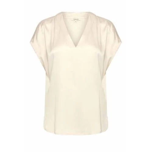 Geef je dagelijkse outfit een verzorgde uitstraling met deze Expresso top met korte mouw. De top valt soepel langs het lichaam door de luchtige stof en heeft een lichte, elegante uitstraling. De V-hals geeft een open halslijn, terwijl de rechte mouwen zorgen voor een rustige belijning. Geschikt voor het voorjaar en voor dagen waarop je iets luchtigs wilt dragen dat er toch verzorgd uitziet.Verzorgde basic voor elke dag Gemaakt van 100% viscose, een zachte en soepel vallende stof die prettig aanvoelt op de huid V-hals die de halslijn duidelijk laat uitkomen en makkelijk combineert met sieraden Korte, rechte mouwen voor een moderne en rustige uitstraling Effen uitvoering, waardoor de top goed te combineren is met prints en structuren Geen sluiting, je trekt de top eenvoudig over het hoofd aan Onderdeel van de Boutique collectie, met aandacht voor detail en afwerkingTe combineren in veel outfitsDeze top past goed in een garderobe voor het voorjaar. Draag de top op een nette broek naar kantoor of op een jeans voor een meer casual dag. Door de effen kleur en de rustige vormgeving blijft de uitstraling helder en gemakkelijk te stylen.Expresso: stijl met aandacht voor pasvormExpresso is een Nederlands modemerk dat bekendstaat om kleding met een doordachte pasvorm en een duidelijke belijning. De collecties worden ontworpen met oog voor detail, waardoor de items prettig draagbaar zijn in het dagelijks leven. Met deze top haal je een stuk betrouwbare kwaliteit in huis dat je vaak kunt dragen.Een comfortabele, luchtige top die je garderobe op een rustige en stijlvolle manier aanvult.