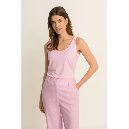Geef je garderobe een frisse update met deze lichtroze dames top van Expresso. De effen kleur heeft een zachte tint, passend bij het voorjaar. De top is mouwloos, heeft een ronde hals en valt soepel om het lichaam. Door het gebruik van viscose met elastaan voelt de stof zacht aan en sluit de top mooi aan zonder strak te zitten.Verfijnde basics voor elke dag Gemaakt van 92% viscose en 8% elastaan voor een soepele, zachte touch Mouwloos model, geschikt om los te dragen of onder een blazer of vest Ronde halslijn die mooi aansluit zonder te hoog te zitten Effen lichtroze kleur die goed te combineren is met prints en denim Onderdeel van de Boutique collectie, met aandacht voor detail en pasvormMakkelijk te stylen in lente-outfitsDeze top is een praktische basis voor uiteenlopende looks. Combineer met een wijde broek en sandalen voor een ontspannen lente-outfit, of draag de top onder een blazer met een nette broek voor een werkdag. Ook op een rok met sneakers komt de lichtroze kleur goed tot zijn recht.Expresso: stijl met aandacht voor detailExpresso staat bekend om doordachte ontwerpen met een vrouwelijke uitstraling. De collecties worden gemaakt met oog voor pasvorm, zodat de kleding prettig valt en je silhouet volgt. Met deze top haal je een item in huis dat je eenvoudig het hele seizoen door draagt.Een zachte basic die je op veel manieren kunt dragen.