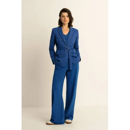 Expresso travelstof wide leg broek blauw