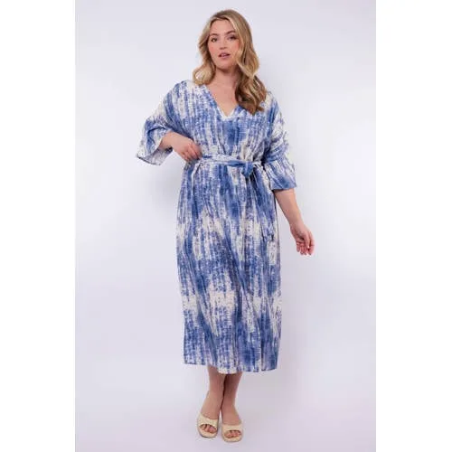 Deze Exxcellent jurk brengt een luchtige voorjaarsstijl samen met een fijne pasvorm. De ds dress woven is uitgevoerd in een blauw/wit tie-dye patroon dat direct opvalt, zonder druk aan te voelen. De soepele stof met viscose valt mooi rond het lichaam en is speciaal ontworpen voor het assortiment grote maten.Verfijnde details voor elke dag Midi lengte met A-lijn pasvorm voor een soepel vallend silhouet Driekwart, wijde mouwen voor extra bewegingsvrijheid en een rustige look V-hals die de halslijn subtiel accentueert Afneembare ceintuur in de taille om de pasvorm naar wens te stylen Blauw/wit tie-dye print voor een rustige, all-over tekening Geen sluiting, je trekt de jurk eenvoudig over het hoofd aan Gemaakt van een soepele stof met viscose en polyamide, geschikt voor dagelijks dragen Geschikt voor handwas, zodat de kleuren mooi blijvenLuchtig en vrouwelijk in het voorjaarDeze midi jurk past goed bij het voorjaar en de zomer. Combineer met sandalen voor een daglook of met laarsjes en een licht vest op koelere dagen. De ceintuur kun je strakker of losser knopen, afhankelijk van hoeveel taille je wilt benadrukken.Exxcellent: stijl in grote matenExxcellent richt zich op dames met een maatje meer die op zoek zijn naar mode met een moderne uitstraling en een doordachte pasvorm. De ontwerpen zijn gemaakt om prettig te dragen en mooi te vallen, zodat je kledingkast gevuld is met items waar je elke dag op kunt rekenen.Deze jurk pas je eenvoudig aan het moment aan, van werkdag tot weekend.
