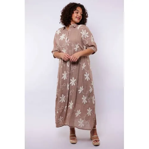 Voor een elegante daglook is de Exxcellent Lilith maxi jurk een toegankelijke keuze. De lange blousejurk in bruin/ecru heeft een rustige bloemenprint en valt soepel om het lichaam. Door de klassieke kraag, korte rechte mouwen en volledige knoopsluiting krijgt de jurk een nette uitstraling die toch heel ontspannen oogt. De subtiele borduursels geven extra detail, zonder dat het overheersend wordt.Kenmerken van de Lilith jurk Lange blousejurk met maxi lengte, ideaal voor een geklede maar comfortabele look Kleurcombinatie bruin/ecru met bloemendessin voor een zachte, vrouwelijke uitstraling Klassieke kraag en doorknoopsluiting over de hele lengte Korte rechte mouwen, prettig voor het voorjaar en zomerse dagen Zachte stof met katoen, die soepel langs het lichaam valt Subtiele borduursels als stijlvol detail Ontworpen binnen het 'Grote maten' assortiment voor een comfortabele pasvormVeelzijdig in het dagelijks levenDeze lange jurk is fijn voor lentedagen waarop je in één keer klaar wilt zijn. Draag de Lilith met platte sandalen voor een relaxte dag, of met nette laarsjes voor een meer geklede gelegenheid. De doorknoopsluiting maakt het ook mogelijk om de jurk open te dragen over een top en broek voor een casual laagjeslook.Exxcellent voor zelfverzekerde pasvormenExxcellent richt zich op dames met een maatje meer en ontwerpt kleding waarin pasvorm en comfort centraal staan. De modellen zijn doordacht gesneden, zodat ze mooi aansluiten en voldoende ruimte geven waar dat prettig is. Met deze Lilith jurk haal je een betrouwbare basis in huis waar je elke keer weer met een goed gevoel naar grijpt.Een lange blousejurk die je garderobe verrijkt met een rustige print en een comfortabele pasvorm.