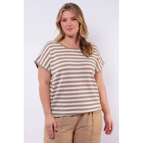 Exxcellent gestreepte top lichtbruin