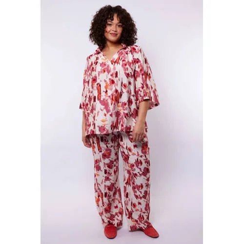 Breng kleur in je garderobe met de Exxcellent dames broek Nikkie. Deze lange broek heeft een all over print in wit, roze en rood en geeft elke outfit een frisse, zomerse uitstraling. De losse pasvorm en regular waist zorgen voor bewegingsvrijheid, terwijl de elastische tailleband comfortabel aansluit rond je middel. Geschikt als casual basisstuk dat er verzorgd uitziet en de hele dag comfortabel zit.Zomerse broek met comfortabel detail Gemaakt van 80% viscose en 20% polyamide voor een soepel vallende stof Lange broek met loose fit, passend voor warme dagen of ontspannen momenten Elastische tailleband voor gemak bij het aan- en uittrekken en een comfortabele pasvorm Regular waist die natuurlijk in de taille valt Praktische zijzakken en zakken achter, sierzakken als extra detail All over print in wit/roze/rood die direct in het oog springt Onderdeel van een co-ord set, zodat je eenvoudig een bijpassende look kunt creëren Geschikt voor het grote maten assortiment, met aandacht voor ruimte en draagcomfortCasual broek voor zomerse dagenDeze broek combineer je gemakkelijk met luchtige tops en eenvoudige T-shirts, zodat de print de hoofdrol krijgt. Door de losse pasvorm is dit een praktische keuze voor zomerse dagen, een dagje weg of een ontspannen werkoutfit met een nette blouse.Exxcellent met oog voor pasvormExxcellent richt zich op mode met een comfortabele pasvorm voor vrouwen die kiezen voor gemak en stijl. De collecties sluiten aan bij verschillende momenten in het dagelijks leven en bieden kleding waarin je je vrij kunt bewegen, met ontwerpen die zijn afgestemd op grotere maten.Een broek met print die je zomergarderobe een kleurrijke aanvulling geeft.