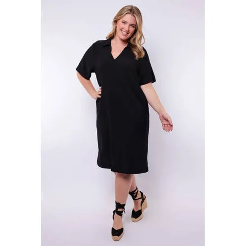 Kies voor een rustige, moderne uitstraling met deze Exxcellent midi jurk in zwart. De jurk heeft een middelgrote lengte en valt soepel langs het lichaam, waardoor een ontspannen silhouet ontstaat. De V-hals en korte rechte mouwen geven een heldere, eigentijdse look, terwijl de plisséstructuur zorgt voor subtiele structuur in de stof.Praktische details van deze jurk Middelgrote lengte, geschikt voor zowel werk als vrije tijd Zachte, soepele knit die prettig aanvoelt op de huid V-hals zorgt voor een open halslijn Korte rechte mouwen voor een luchtig gevoel in het voorjaar Effen zwarte kleur die goed combineert met verschillende schoenen en accessoires Plissédetail geeft extra structuur en beweging aan de jurk Geen sluiting, je trekt de jurk eenvoudig over het hoofd aanVeelzijdig in het dagelijks levenDeze T-shirtjurk is een praktische basis voor je garderobe in het lenteseizoen. Combineer haar met sneakers en een denim jasje voor een casual dag, of met een blazer en enkellaarsjes voor een meer geklede uitstraling. De effen zwarte kleur maakt het eenvoudig om met sieraden en tassen te variëren.Exxcellent: mode met aandacht voor pasvormExxcellent richt zich op kleding met een doordachte pasvorm. De collecties sluiten aan bij het dagelijks leven, met kleding die er verzorgd uitziet en comfortabel draagt. Bij dit merk kun je rekenen op eigentijdse ontwerpen, zorgvuldige details en materialen die geschikt zijn voor alledaags gebruik.Een praktische basisjurk waar je het hele seizoen veel aan hebt.