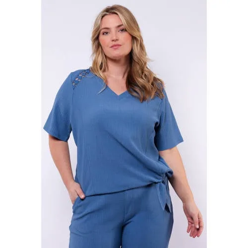 Deze gebreide top van Exxcellent in diepblauw is een praktische basic met subtiele details voor elke dag. De top heeft een comfortabele pasvorm, korte rechte mouwen en een V-hals die mooi openvalt. Door de effen kleur is dit een rustig item, terwijl de broderie, het knoopdetail en de plisséstructuur zorgen voor een verzorgde uitstraling. Ideaal voor het voorjaar en lichte dagen op kantoor of in je vrije tijd.Verzorgde details en prettig draagcomfort Effen blauwe kleur, makkelijk te combineren met jeans, een nette broek of rok V-hals voor een open halslijn Korte rechte mouwen, luchtig voor het lenteseizoen Broderie en knoopdetail aan de voorkant voor een verfijnd accent Plissé-effect geeft een sierlijke structuur en valt soepel om het lichaam Elastische stof met comfortabele stretch, passend binnen het grote maten assortiment Geen sluiting, gewoon aantrekken en klaarVeelzijdige top voor elke dagDe blauwe top past goed bij zowel een casual als een wat gekledere look. Combineer met een donkere broek en enkellaarsjes voor werk, of draag de top met een lichte jeans en sneakers voor een ontspannen dag. De soepele stof volgt je bewegingen, waardoor de top prettig is om de hele dag te dragen.Exxcellent: mode met aandacht voor pasvormExxcellent richt zich op dames die een modieuze stijl willen combineren met een goede pasvorm. De collecties zijn ontworpen met oog voor detail, comfortabele materialen en doordachte belijning. Zo kun je rekenen op eigentijdse items waarin je je vrij kunt bewegen en verzorgd voor de dag komt.Een rustig vormgegeven, makkelijk te combineren top die goed past in je garderobe.