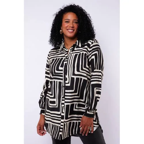 Deze Exxcellent tuniek is een praktische basis voor dagen waarop je er verzorgd uit wilt zien zonder na te denken over je outfit. De tuniek heeft een moderne grafische print en een klassieke kraag, waardoor het model zowel casual als wat gekleder te dragen is. Door de langere lengte valt de tuniek soepel over je heupen voor een rustige, verzorgde uitstraling.Details die het verschil maken Gemaakt van viscose en katoen, wat zacht aanvoelt op de huid en soepel valt. Lange rechte mouwen voor een rustig silhouet en extra bedekking. Klassieke kraag en volledige knoopsluiting aan de voorkant. Grafische print die direct zorgt voor een moderne look. Geen zakken, waardoor de stof mooi glad langs je lichaam valt.Veelzijdig te combineren in jouw garderobeDeze tuniek laat zich makkelijk stylen. Draag het model open als luchtig laagje over een top en een smalle broek voor een ontspannen dag, of sluit de knopen en combineer met een nette broek of legging voor een meer geklede look. Door de lange mouwen is de tuniek ook geschikt voor wisselende seizoenen.Exxcellent: mode met aandacht voor pasvormExxcellent richt zich op kleding waarin je je vrij kunt bewegen en die goed aansluit op het dagelijks leven. Het merk werkt met doordachte pasvormen en herkenbare details, zodat je telkens weer kunt vertrouwen op een comfortabele fit en een verzorgde uitstraling.Een toegankelijke tuniek die eenvoudig in je kledingkast past.
