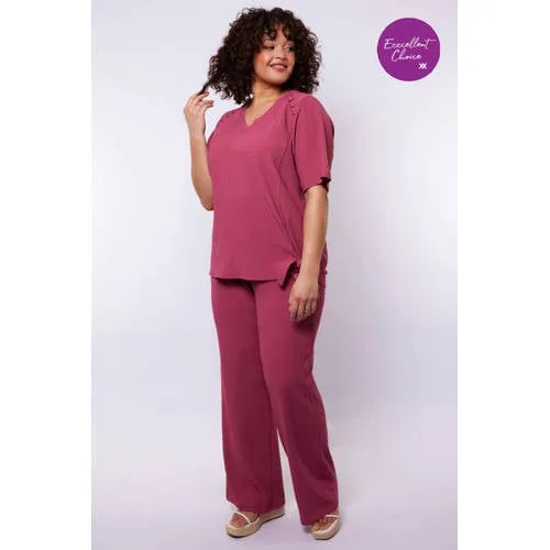 Deze Exxcellent rode plissé broek met wide leg is een fijne basis voor dagen waarop je comfort en stijl wilt combineren. De broek heeft een hoge taille met elastische band, waardoor hij mooi aansluit in de taille en soepel langs de benen valt. De effen rode kleur zorgt voor een krachtige, vrouwelijke uitstraling die goed past bij de frisse sfeer van de lente.Comfortabele pasvorm met vrouwelijke details Wide leg model dat los om de benen valt voor een elegante look Hoge taille met elastische tailleband voor een aansluitende en comfortabele pasvorm Plissé structuur voor een speels en verfijnd effect Effen rode kleur die makkelijk te combineren is met tops in zachte of neutrale tinten Zakken voor, handig voor kleine essentials Gemaakt van soepel materiaal dat prettig aanvoelt en licht meebeweegt Onderdeel van het grote maten assortiment, ontworpen met aandacht voor vrouwelijke vormenGeschikt voor zowel werk als vrije tijdDeze casual broek past goed bij een blouse of fijn gebreid truitje voor een verzorgde outfit naar je werk. Met een eenvoudig T-shirt en sneakers krijgt de broek een meer ontspannen uitstraling voor een dagje weg of een etentje. Door de lengte en de wide leg stijl oogt de broek altijd gekleed.Exxcellent: stijl met aandacht voor pasvormExxcellent richt zich op mode die goed staat en comfortabel voelt, ook in grotere maten. De ontwerpen hebben aandacht voor pasvorm en proporties, zodat je je vrij kunt bewegen en je outfit de hele dag mooi blijft zitten. Met deze broek haal je een betrouwbaar kledingstuk in huis dat je vaak uit de kast zult pakken.Een moderne, vrouwelijke broek die je garderobe direct meer kleur en comfort geeft.