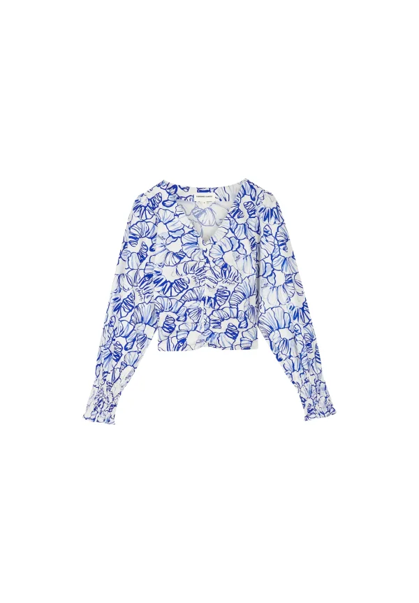 Blouse type: Blouseshirt; Design: Pofmouwen; Materiaal: Katoen; Kraag: Zonder kraag; Details: Ruches, Gedrapeerd; Extra's: All-over patroon; Pasvorm: Slanke pasvorm; Armlengte: Lange mouw; Lengte: Normale lengte