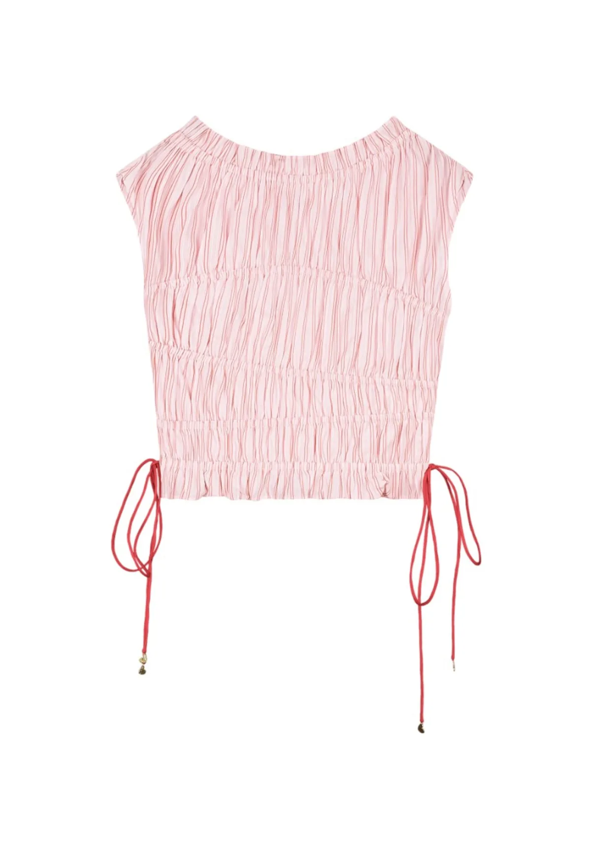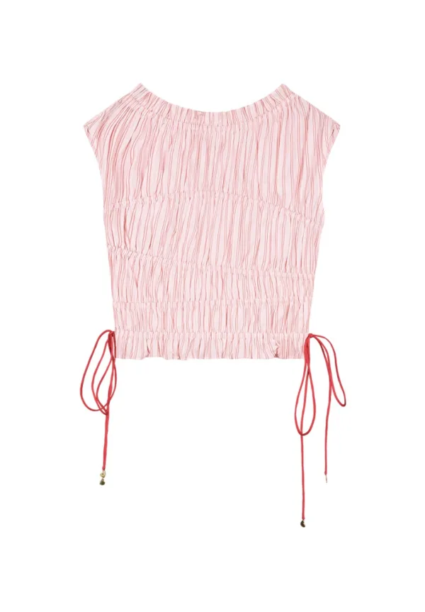 Blouse type: Blouseshirt; Design: Gevoerde zoom/rand; Materiaal: Katoen; Motief: Gestreept; Kraag: Zonder kraag; Details: Ruches, Gedrapeerd; Extra's: All-over patroon; Pasvorm: Normale pasvorm; Armlengte: Mouwloos; Lengte: Normale lengte