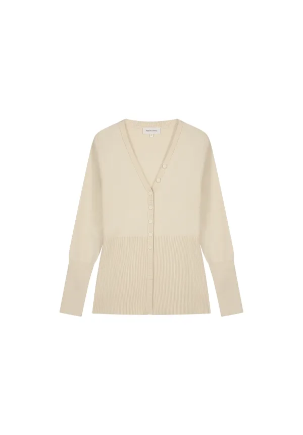 Design: Elastische taille/zoom, Geribbeld gebreid, Tailleband; Type sluiting: Knoopsluiting; Materiaal: Knitwear; Halstype: V-hals; Motief: Effen; Extra's: Label patch/label flag, Op staal naden; Pasvorm: Normale pasvorm; Armlengte: Lange mouw; Lengte: Normale lengte
