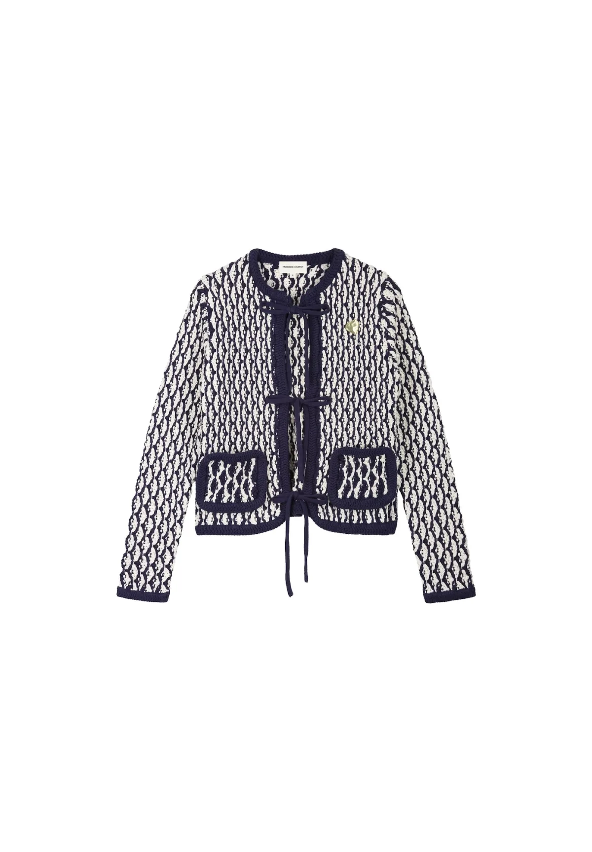 Specificaties: Fabienne Chapot Gebreid vest navy / wit