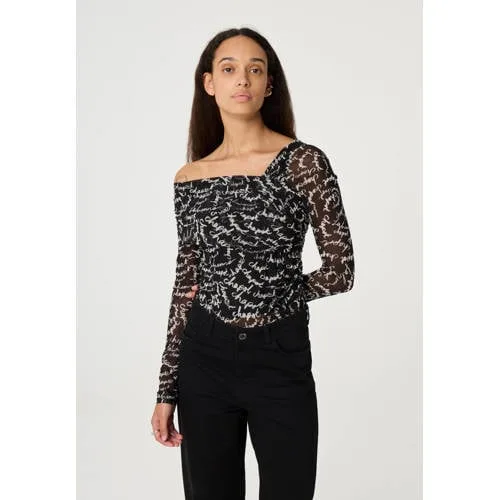 Design: Gevoerde zoom/rand; Type sluiting: Slip; Materiaal: Jersey; Motief: Logoprint; Details: Gedrapeerd; Extra's: Licht transparant, All-over patroon, Label print; Pasvorm: Aansluitende pasvorm; Armlengte: Lange mouw; Lengte: Normale lengte