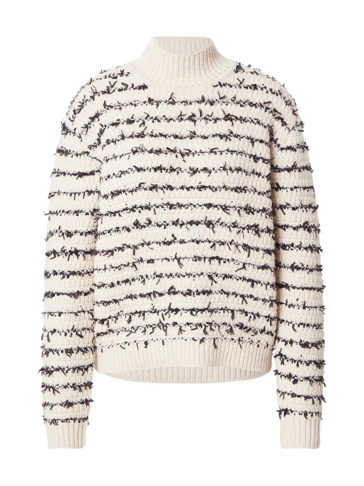 Design: Geribbelde kraag, Geribd ceintuurtje, Overcut schouder; Materiaal: Knitwear; Halstype: Opstaande kraag; Motief: Gestreept; Extra's: All-over patroon, Fully fashioned, Met textuur; Pasvorm: Losse pasvorm; Armlengte: Lange mouw; Lengte: Normale lengte