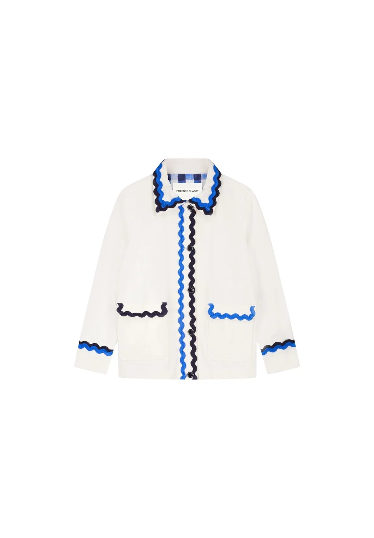 Specificaties: Fabienne Chapot Tussenjas lichtbeige / blauw / zwart