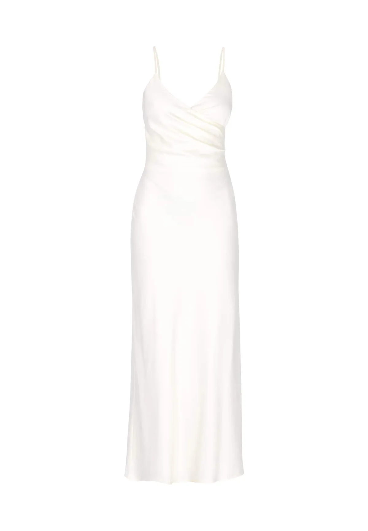 Design: Rug rits; Type sluiting: Ritssluiting; Materiaal: Satijn; Halstype: Wikkeltop; Motief: Effen; Soort bandjes: Spaghettibandjes; Details: Plooien; Extra's: Gladde stof; Lengte: Lang/maxi; Snit: Getailleerd; Pasvorm: Slanke pasvorm; Armlengte: Mouwloos