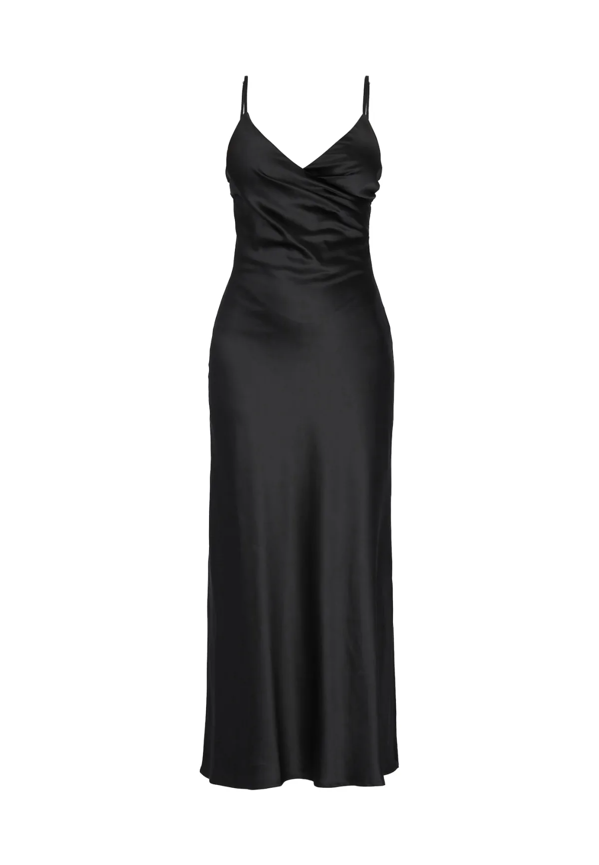 Design: Gevoerde zoom/rand, Diepe snit/decolleté; Type sluiting: Ritssluiting; Materiaal: Satijn; Halstype: Wikkeltop; Motief: Effen; Soort bandjes: Spaghettibandjes; Details: Plooien; Extra's: Verstelbare bandjes, Op staal naden, Gladde stof; Lengte: Lang/maxi; Snit: Getailleerd; Pasvorm: Slanke pasvorm; Armlengte: Mouwloos