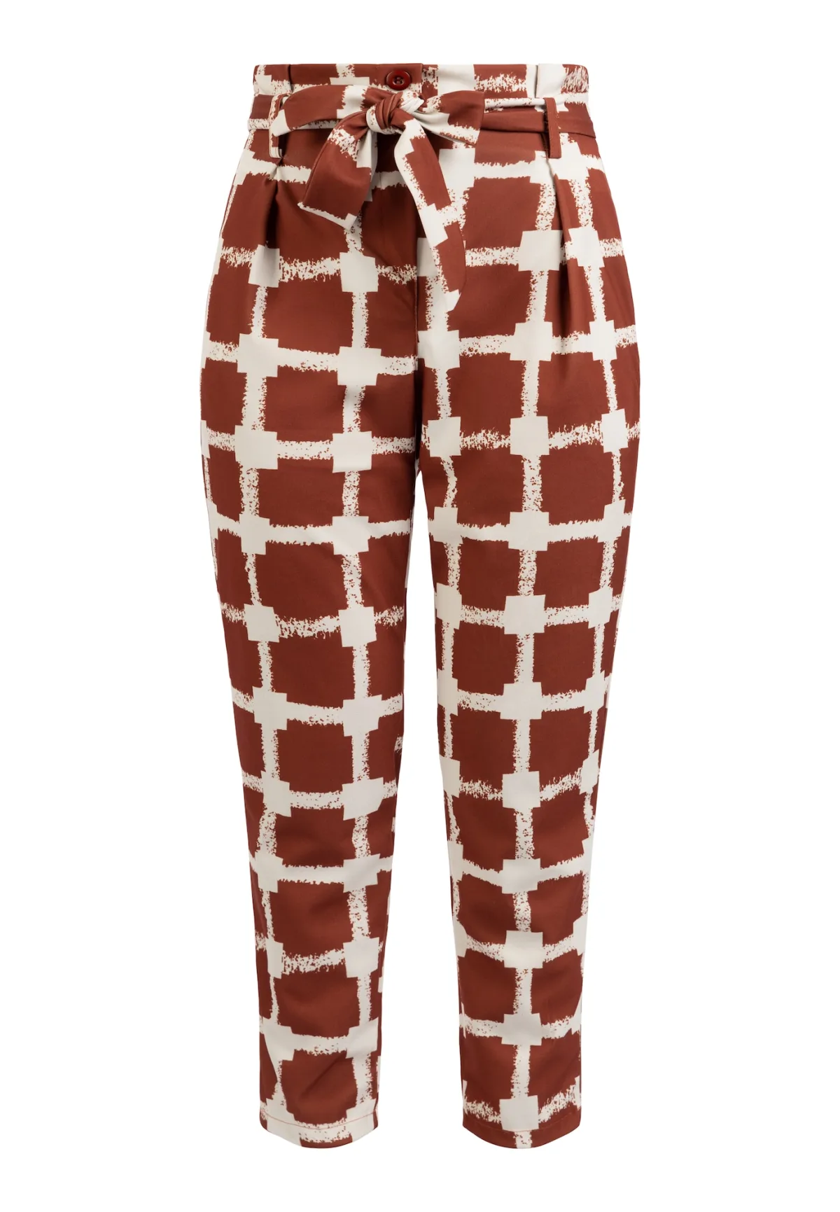 Design: Met riem, Zakken aan de zijkant; Type sluiting: Ritssluiting; Details: Plooien; Extra's: All-over patroon; Lengte: 7/8 lengte; Pasvorm: Tapered; Taillehoogte: High waist