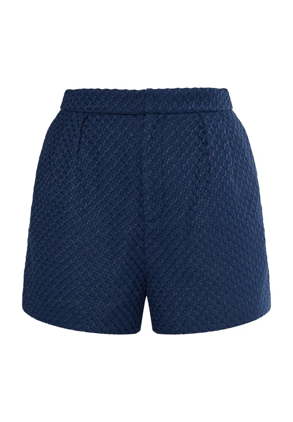 Shorts zijn een grote trend deze zomer. Bij faina zijn de elegante shorts gemaakt met plooien en een hoge taille, waardoor de shorts er vrouwelijk en serieus tegelijk uitzien. De fijne boucléstructuur met steekzakjes is makkelijk te combineren met een top of blouse. Bijzonder stijlvol met het bijpassende jasje van het label. Korte broek