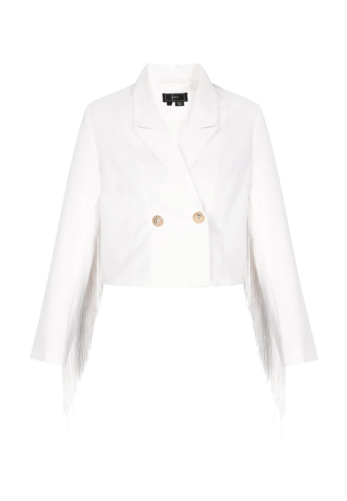 Design: Gevoerde zoom/rand, Revers kraag; Type sluiting: Knoopsluiting; Voering: Licht gevoerd; Motief: Effen; Details: Franjes; Extra’s: Op staal naden, Gladde stof; Pasvorm: Normale pasvorm; Armlengte: Lange mouw; Lengte: Korte pasvorm