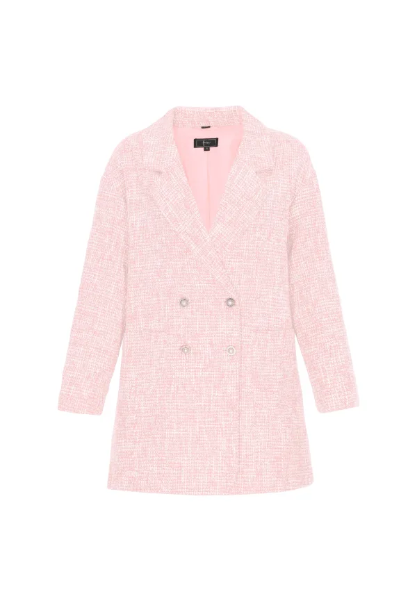 Design: Rechte zoom, Revers kraag, Opgezette zakken; Type sluiting: Knoopsluiting; Voering: Licht gevoerd; Materiaal: Bouclé; Motief: Mélange; Extra's: Met textuur; Pasvorm: Losse pasvorm; Armlengte: Lange mouw; Lengte: Lange pasvorm