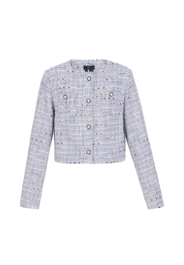 Design: Rechte zoom, Knop placket, Borstzak; Type sluiting: Knoopsluiting; Voering: Niet gevoerd; Materiaal: Bouclé; Motief: Geruit; Kraag: Zonder kraag; Extra's: Met textuur, Voelt zacht aan; Pasvorm: Normale pasvorm; Armlengte: Lange mouw; Lengte: Korte pasvorm