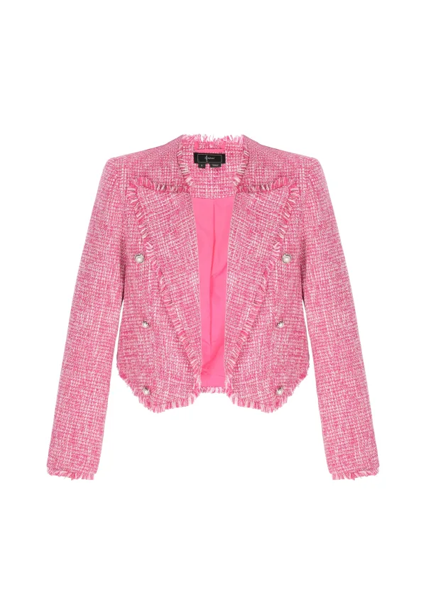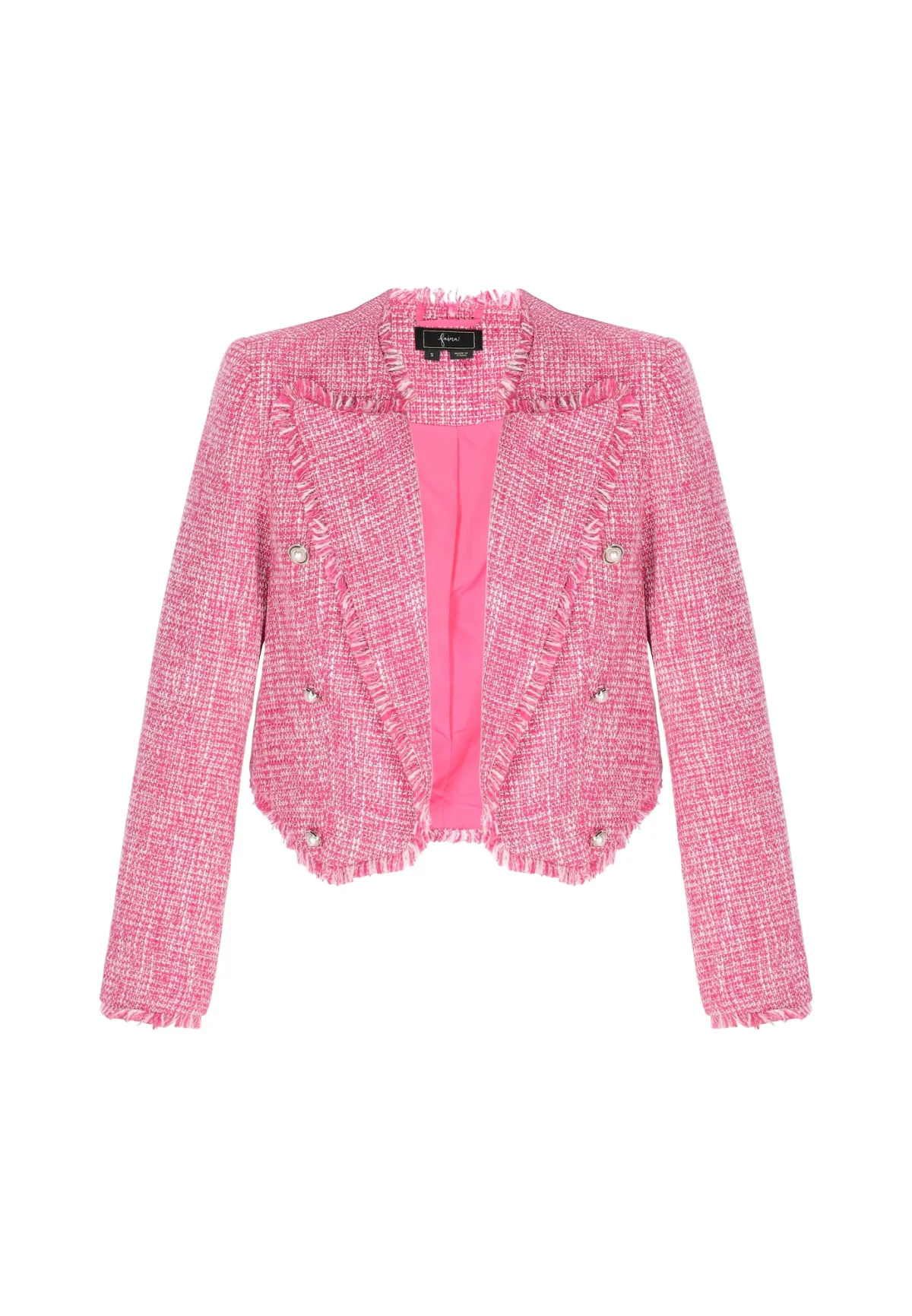 Design: Revers kraag; Voering: Licht gevoerd; Materiaal: Bouclé; Details: Franjes; Extra's: Met textuur; Pasvorm: Normale pasvorm; Armlengte: Lange mouw; Lengte: Korte pasvorm