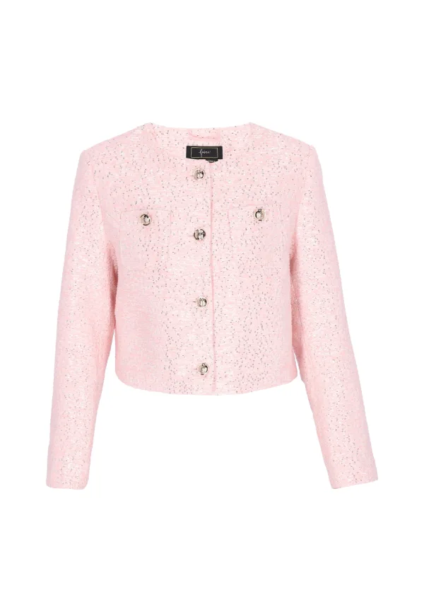 Design: Rechte zoom, Recht model, Opgezette zakken; Type sluiting: Knoopsluiting; Voering: Licht gevoerd; Materiaal: Bouclé; Kraag: Zonder kraag; Extra's: Glinsterend, Met textuur; Pasvorm: Normale pasvorm; Armlengte: Lange mouw; Lengte: Normale lengte
