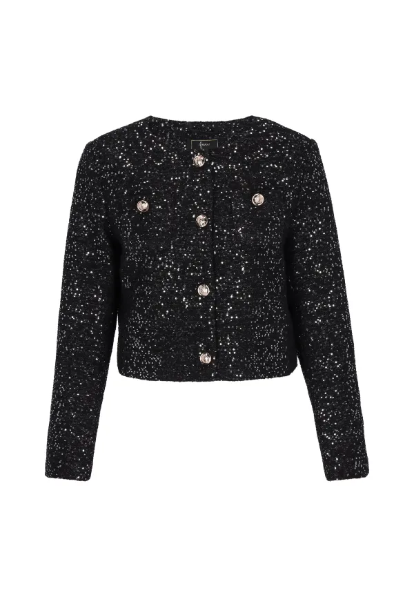 Design: Knop placket, Borstzak; Type sluiting: Knoopsluiting; Voering: Niet gevoerd; Materiaal: Bouclé; Motief: Effen; Kraag: Zonder kraag; Details: Pailletten; Extra's: Glitterend, Met textuur; Pasvorm: Normale pasvorm; Armlengte: Lange mouw; Lengte: Normale lengte