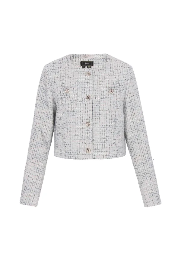 Design: Knop placket, Borstzak; Type sluiting: Knoopsluiting; Voering: Licht gevoerd; Materiaal: Bouclé; Extra's: Applicaties; Pasvorm: Normale pasvorm; Armlengte: Lange mouw; Lengte: Normale lengte