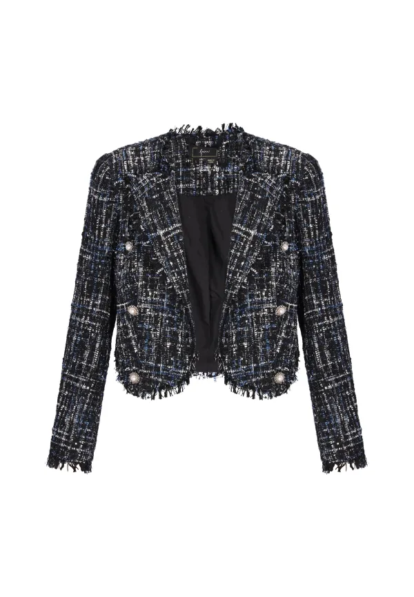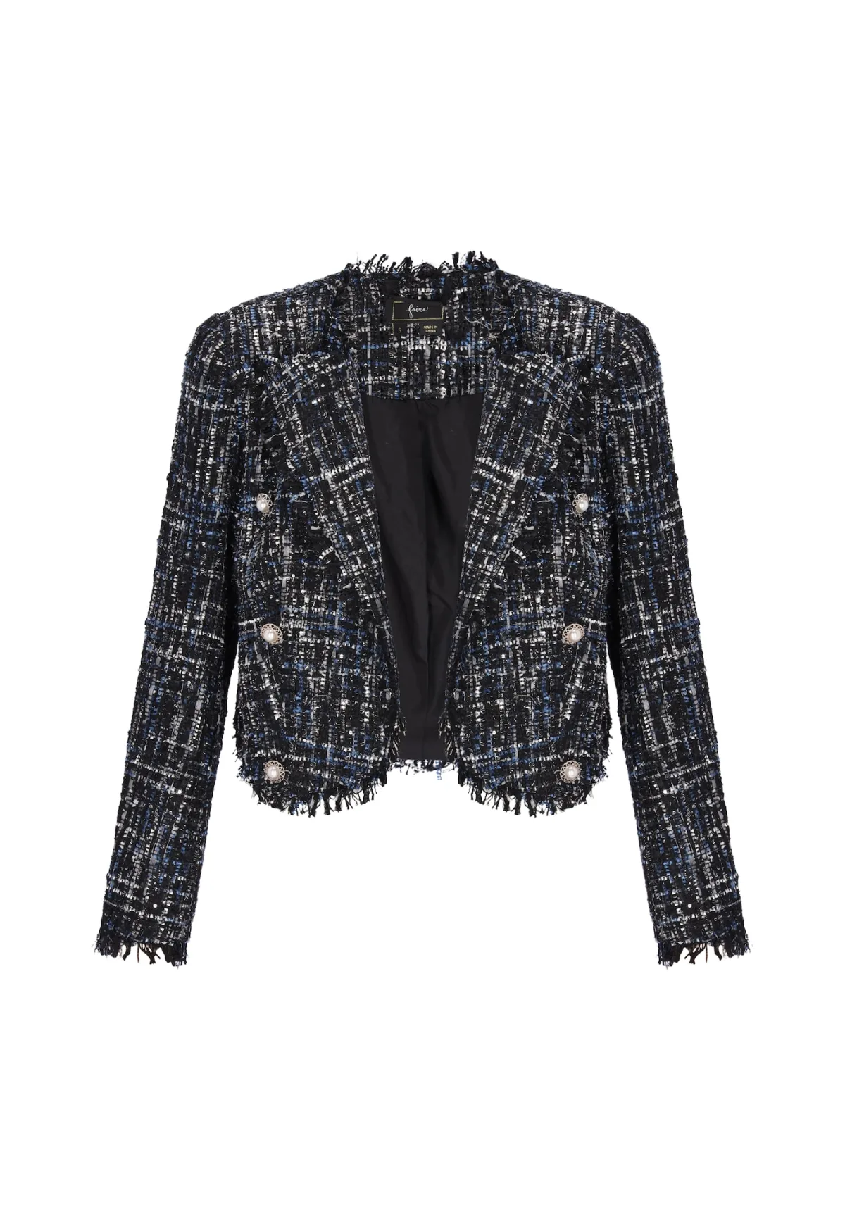 Design: Gefranjerde zoom, Revers kraag; Type sluiting: Knoopsluiting; Voering: Licht gevoerd; Materiaal: Bouclé; Details: Pailletten; Extra's: Effect garen, All-over patroon, Applicaties; Pasvorm: Normale pasvorm; Armlengte: Lange mouw; Lengte: Korte pasvorm