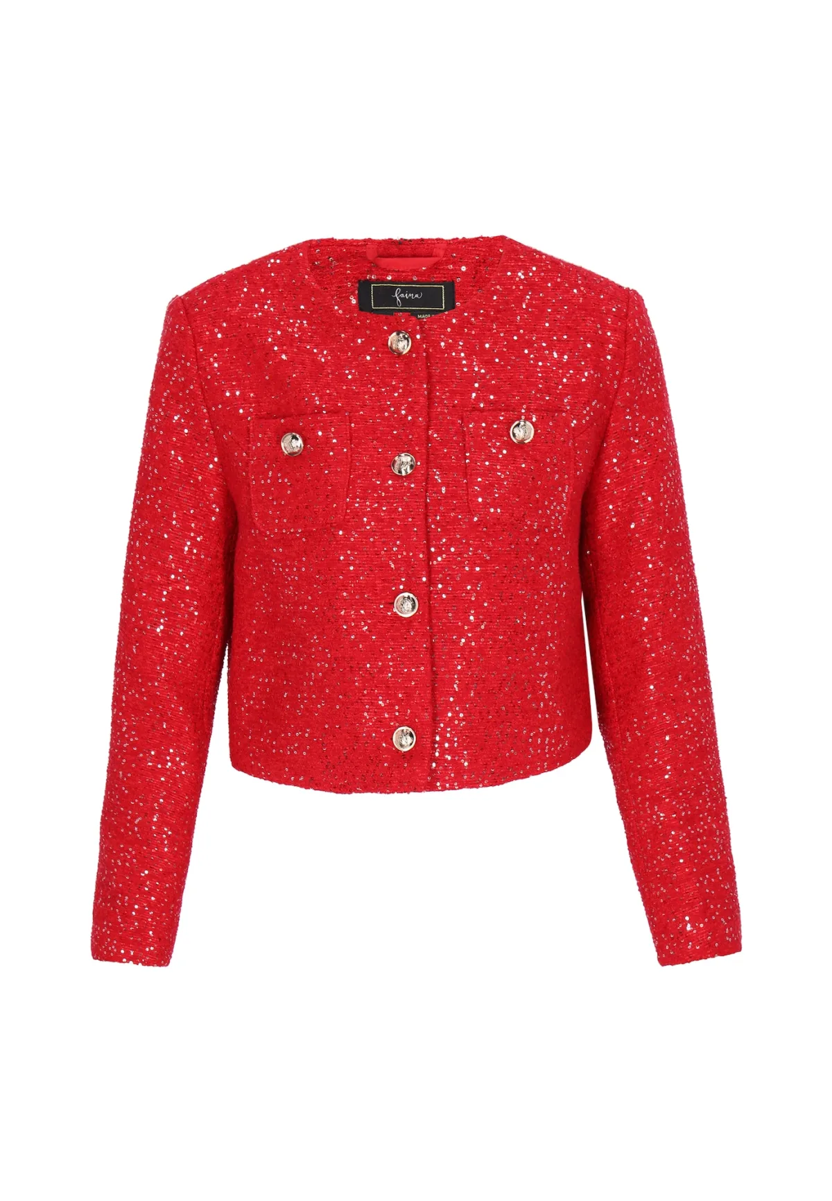 Design: Borstzak; Type sluiting: Knoopsluiting; Voering: Licht gevoerd; Materiaal: Bouclé; Kraag: Zonder kraag; Extra's: Omkeerbare pailletten; Pasvorm: Normale pasvorm; Armlengte: Lange mouw; Lengte: Normale lengte