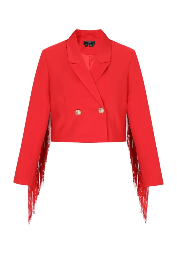 Design: Gevoerde zoom/rand, Knop sluiting; Type sluiting: Knoopsluiting; Voering: Licht gevoerd; Motief: Effen; Details: Franjes; Extra’s: Op staal naden; Pasvorm: Normale pasvorm; Armlengte: Lange mouw; Lengte: Korte pasvorm