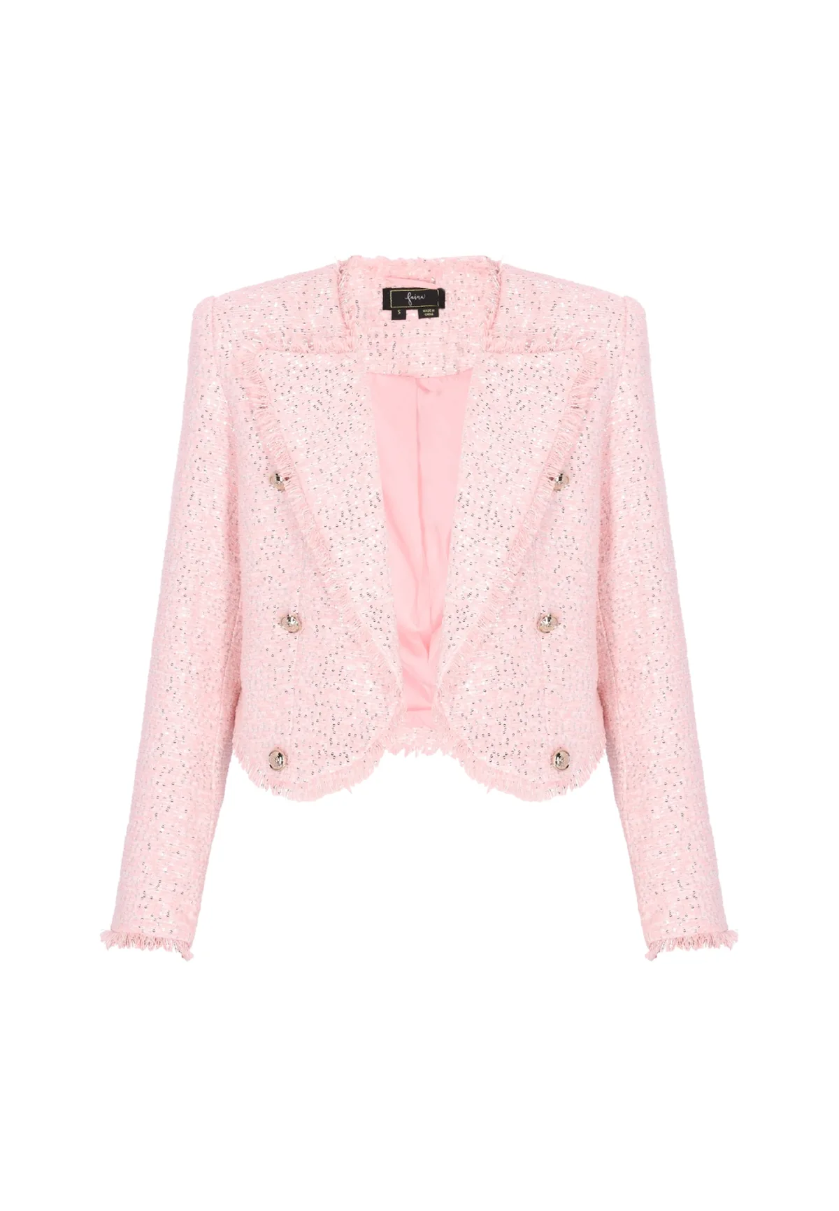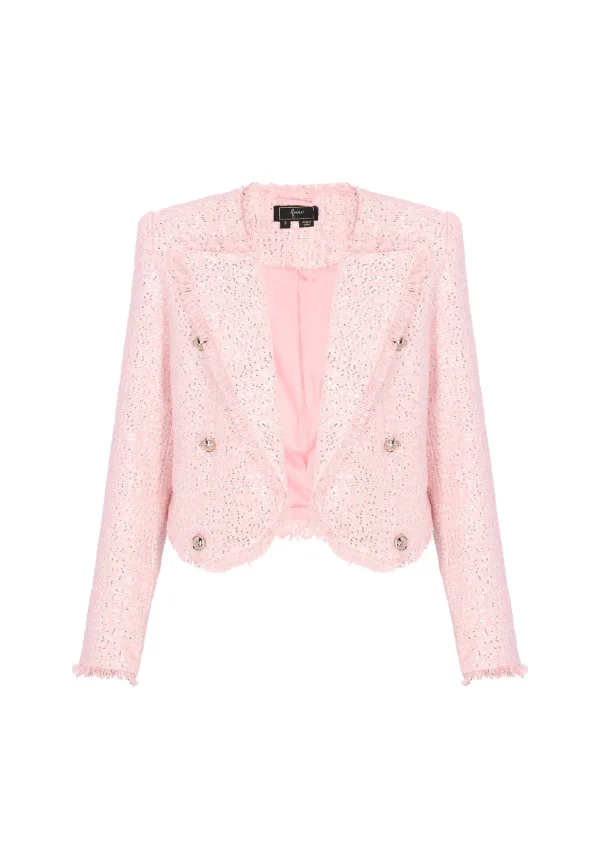 Design: Revers kraag; Type sluiting: Knoopsluiting; Voering: Licht gevoerd; Materiaal: Bouclé; Details: Pailletten; Extra's: Applicaties; Pasvorm: Normale pasvorm; Armlengte: Lange mouw; Lengte: Korte pasvorm
