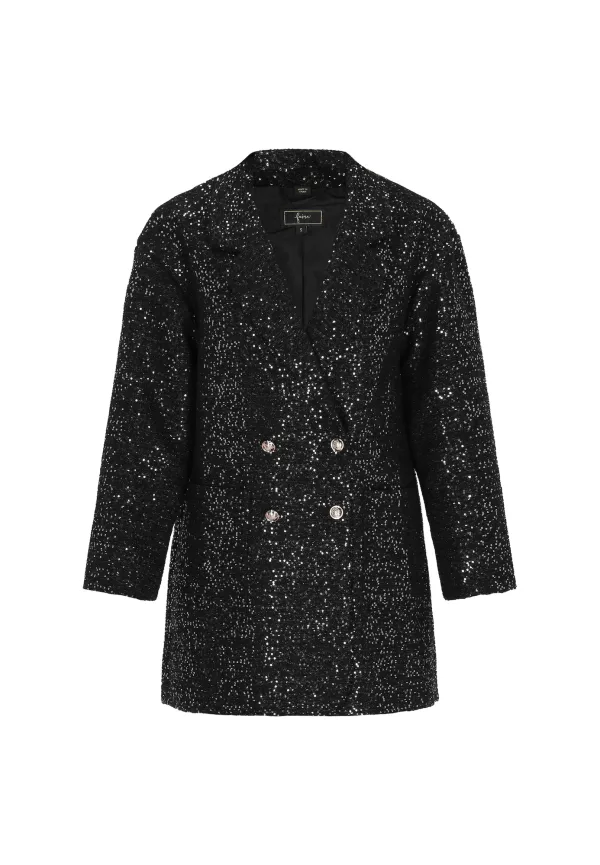 Design: Rechte zoom, Knop placket, Revers kraag; Type sluiting: Knoopsluiting; Voering: Licht gevoerd; Motief: Effen; Details: Pailletten; Extra's: Glinsterend, Voelt zacht aan; Pasvorm: Normale pasvorm; Armlengte: Lange mouw; Lengte: Normale lengte