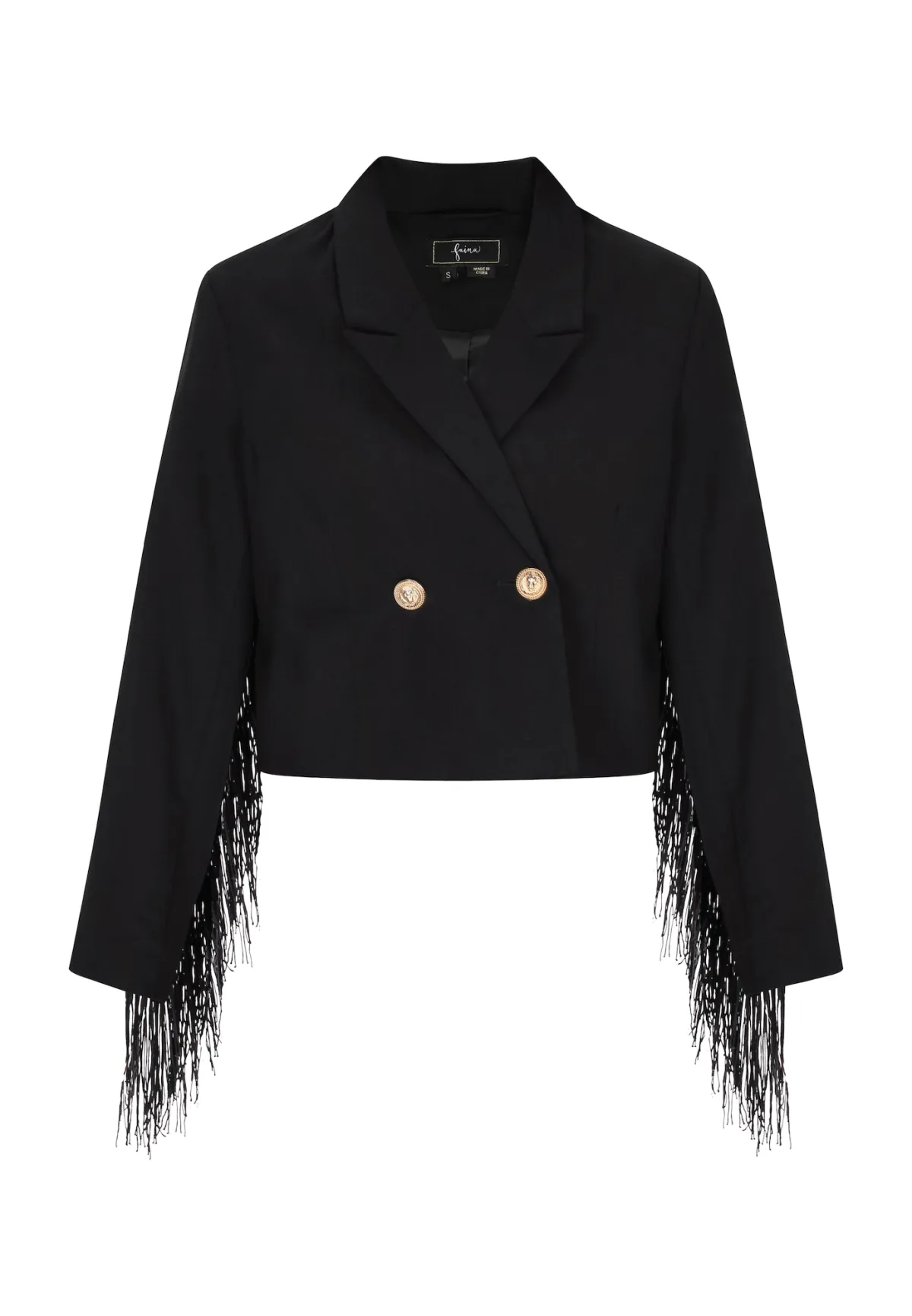 Design: Knop sluiting; Type sluiting: Knoopsluiting; Voering: Licht gevoerd; Motief: Effen; Details: Franjes; Extra’s: Op staal naden; Pasvorm: Normale pasvorm; Armlengte: Lange mouw; Lengte: Korte pasvorm