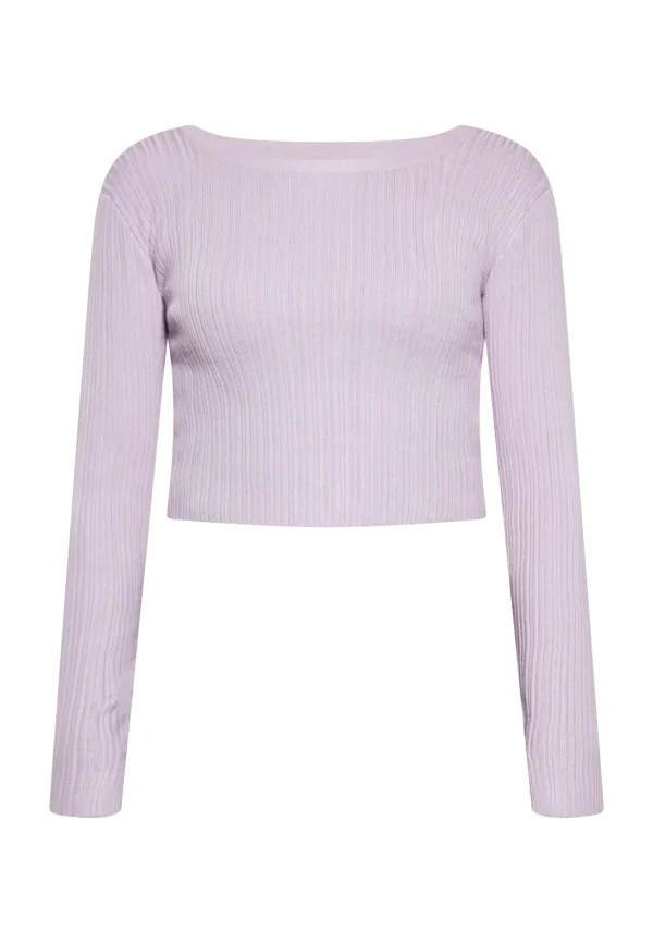 Maak kennis met een stijlvolle en moderne blouse met een open achterkant. Deze blouse met lange mouwen heeft een geribbelde textuur, een nauwsluitend silhouet en een brede ronde halslijn. De cropped lengte zorgt voor een trendy look, terwijl de unieke sluiting aan de achterkant met sierknopen voor een vleugje elegantie zorgt. Met aansluitende mouwen en rekbare stof is dit kledingstuk perfect voor iedereen die graag met zelfvertrouwen wil pronken met zijn stijl. Blouse