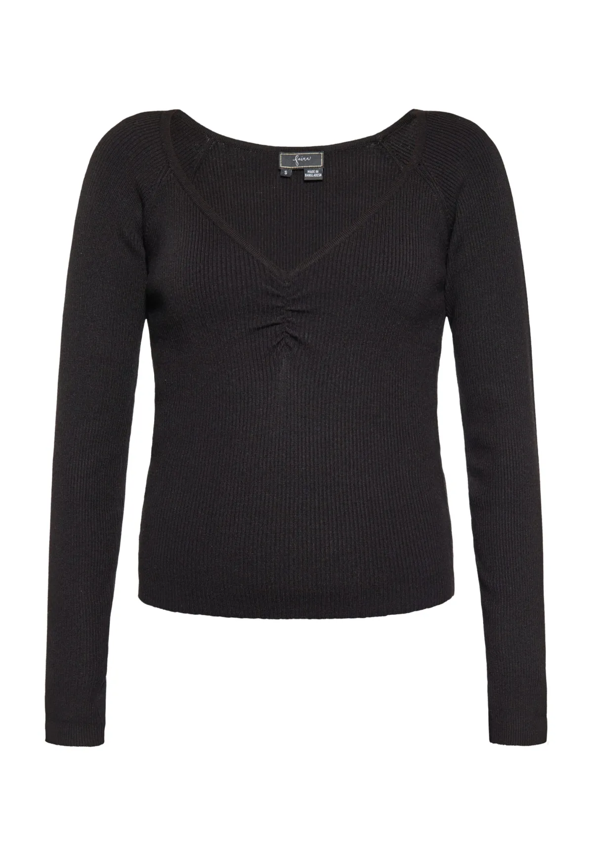 Geef je garderobe een boost met deze stijlvolle blouse, met een geplooide voorkant voor een vleugje verfijning. De geribbelde textuur en de gebreide stof bieden comfort en stretch, terwijl de V-hals voor een fladderend silhouet zorgt. Deze blouse met lange mouwen is een veelzijdige basic essential. Blouse