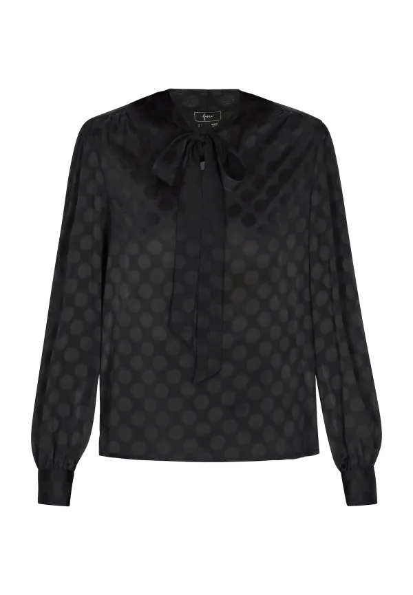 Blouse type: Blouseshirt; Design: Gevoerde zoom/rand; Motief: Gestippeld; Kraag: Strik; Details: Plooien, Gedrapeerd; Extra's: All-over patroon; Pasvorm: Normale pasvorm; Armlengte: Lange mouw; Lengte: Normale lengte