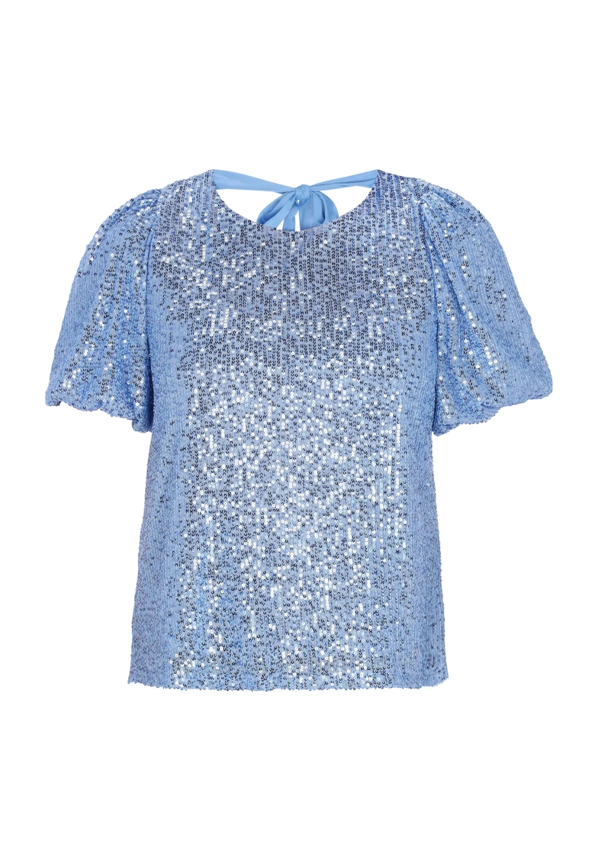 Blouse type: Blouseshirt; Design: Gevoerde zoom/rand, Pofmouwen, Om te knopen/binden; Materiaal: Viscose; Motief: Effen; Kraag: Zonder kraag; Details: Cut-outs, Pailletten, Gedrapeerd; Extra’s: Glitterend; Pasvorm: Normale pasvorm; Armlengte: Kwartmouw; Lengte: Normale lengte