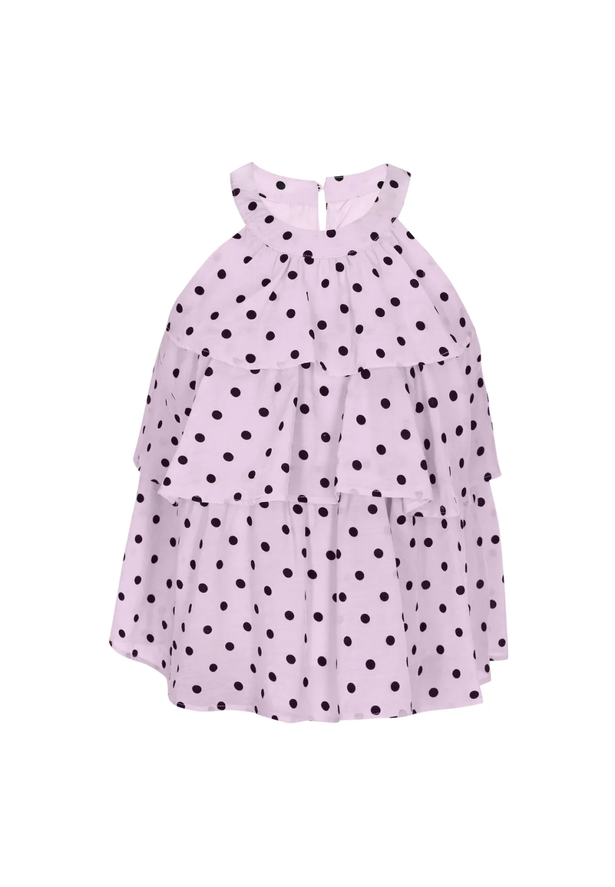 Blouse type: Blouseshirt; Design: Gevoerde zoom/rand, Keyholesluiting; Type sluiting: Knoopsluiting; Materiaal: Viscose; Halstype: Ronde hals; Motief: Gestippeld; Kraag: Zonder kraag; Details: Cut-outs, Volant; Extra's: All-over patroon; Pasvorm: Losse pasvorm; Armlengte: Mouwloos; Lengte: Normale lengte