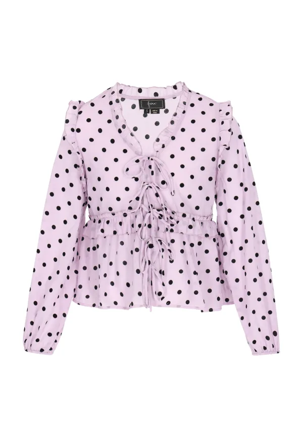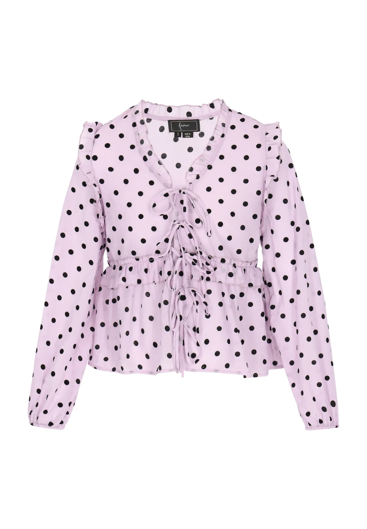 Blouse type: Klassieke blouse; Design: Vetering; Materiaal: Chiffon; Motief: Gestippeld; Kraag: Zonder kraag; Details: Ruches, Volant, Gedrapeerd; Extra's: Op staal naden; Pasvorm: Normale pasvorm; Armlengte: Lange mouw; Lengte: Normale lengte
