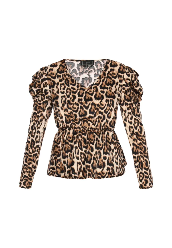 Blouse type: Blouseshirt; Design: Gevoerde zoom/rand, Pofmouwen; Motief: Dierenprint; Kraag: Zonder kraag; Details: Peplum, Plooien, Gedrapeerd; Extra's: All-over patroon, Buigzame grip; Pasvorm: Normale pasvorm; Armlengte: Lange mouw; Lengte: Normale lengte