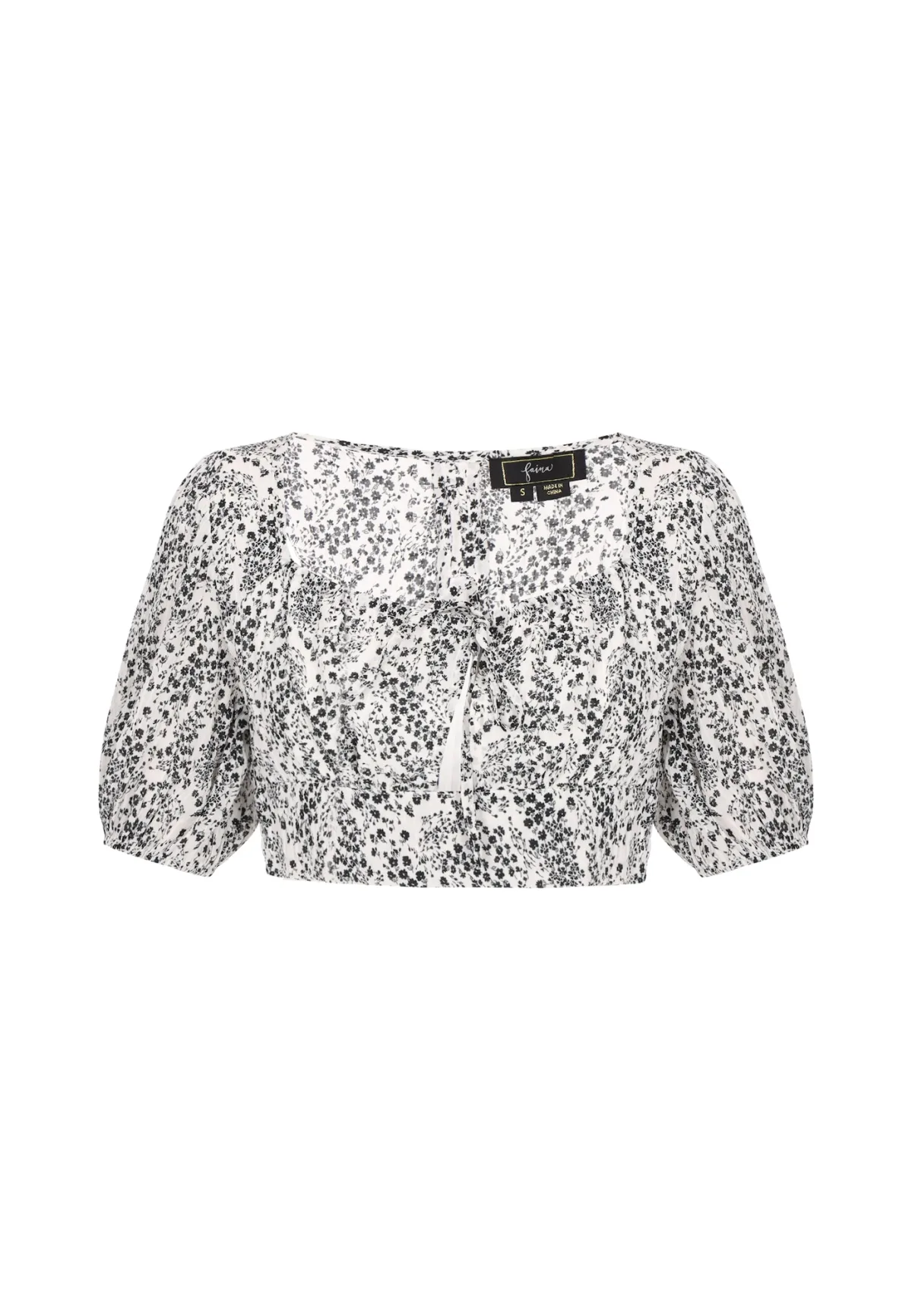 Blouse type: Blouseshirt; Design: Pofmouwen, Overige kragen; Type sluiting: Ritssluiting; Motief: Bloemenprint; Kraag: Zonder kraag; Details: Cut-outs, Gedrapeerd; Extra's: All-over patroon; Pasvorm: Slanke pasvorm; Armlengte: Kwartmouw; Lengte: Korte pasvorm