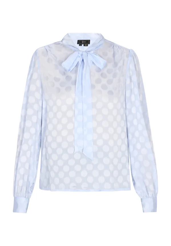Blouse type: Blouseshirt; Design: 2-knoops manchetten, Pofmouwen, Om te knopen/binden; Motief: Gestippeld; Kraag: Strik; Details: Plooien, Gedrapeerd; Pasvorm: Normale pasvorm; Armlengte: Lange mouw; Lengte: Normale lengte