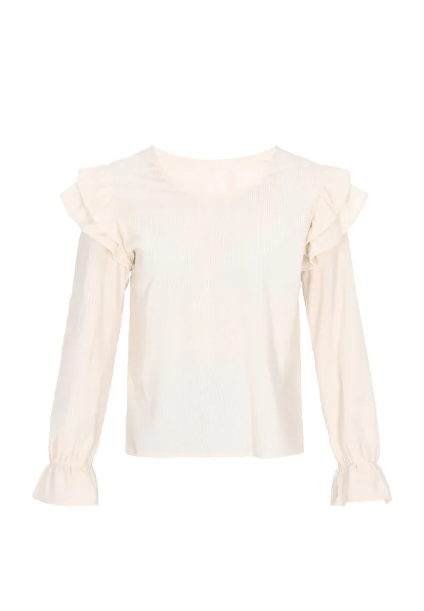 Blouse type: Blouseshirt; Design: Gevoerde zoom/rand, Pofmouwen; Motief: Gestreept; Kraag: Zonder kraag; Details: Ruches, Volant, Gedrapeerd; Extra's: All-over patroon; Pasvorm: Normale pasvorm; Armlengte: Lange mouw; Lengte: Normale lengte