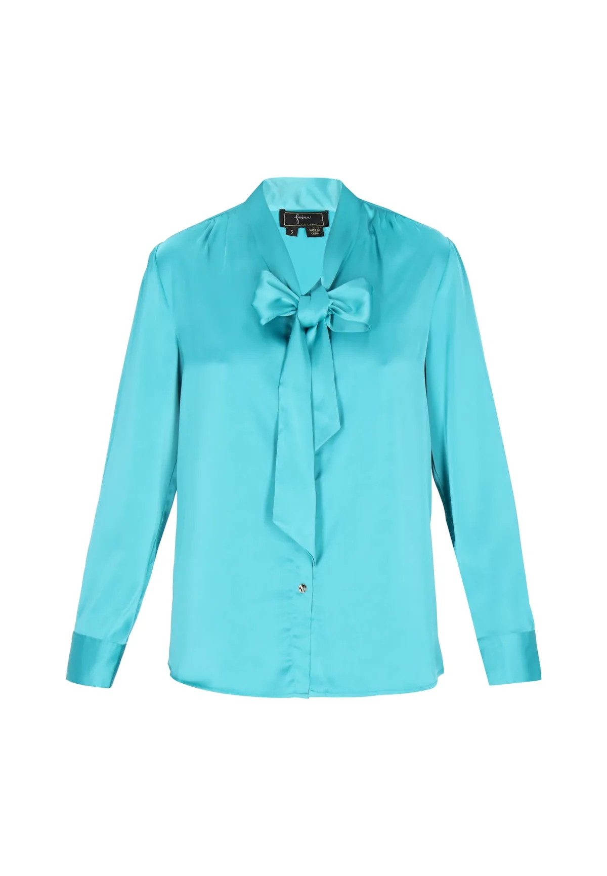 Blouse type: Klassieke blouse; Type sluiting: Knoopsluiting; Materiaal: Satijn; Motief: Effen; Kraag: Strik; Details: Plooien, Gedrapeerd; Pasvorm: Losse pasvorm; Armlengte: Lange mouw; Lengte: Normale lengte