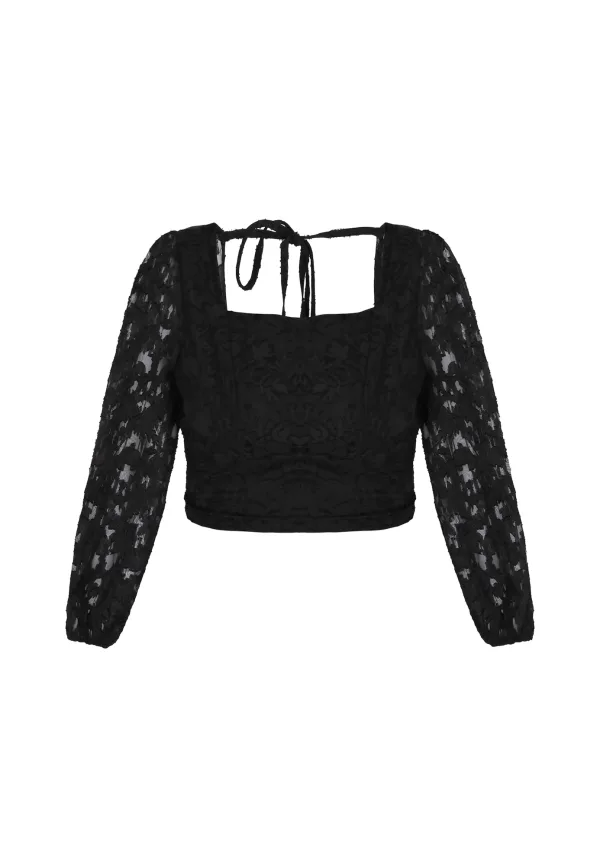 Blouse type: Blouseshirt; Design: Gevoerde zoom/rand; Type sluiting: Snoersluiting; Motief: Effen; Kraag: Zonder kraag; Details: Gedrapeerd, Backless; Extra's: Op staal naden; Pasvorm: Normale pasvorm; Armlengte: Lange mouw; Lengte: Korte pasvorm