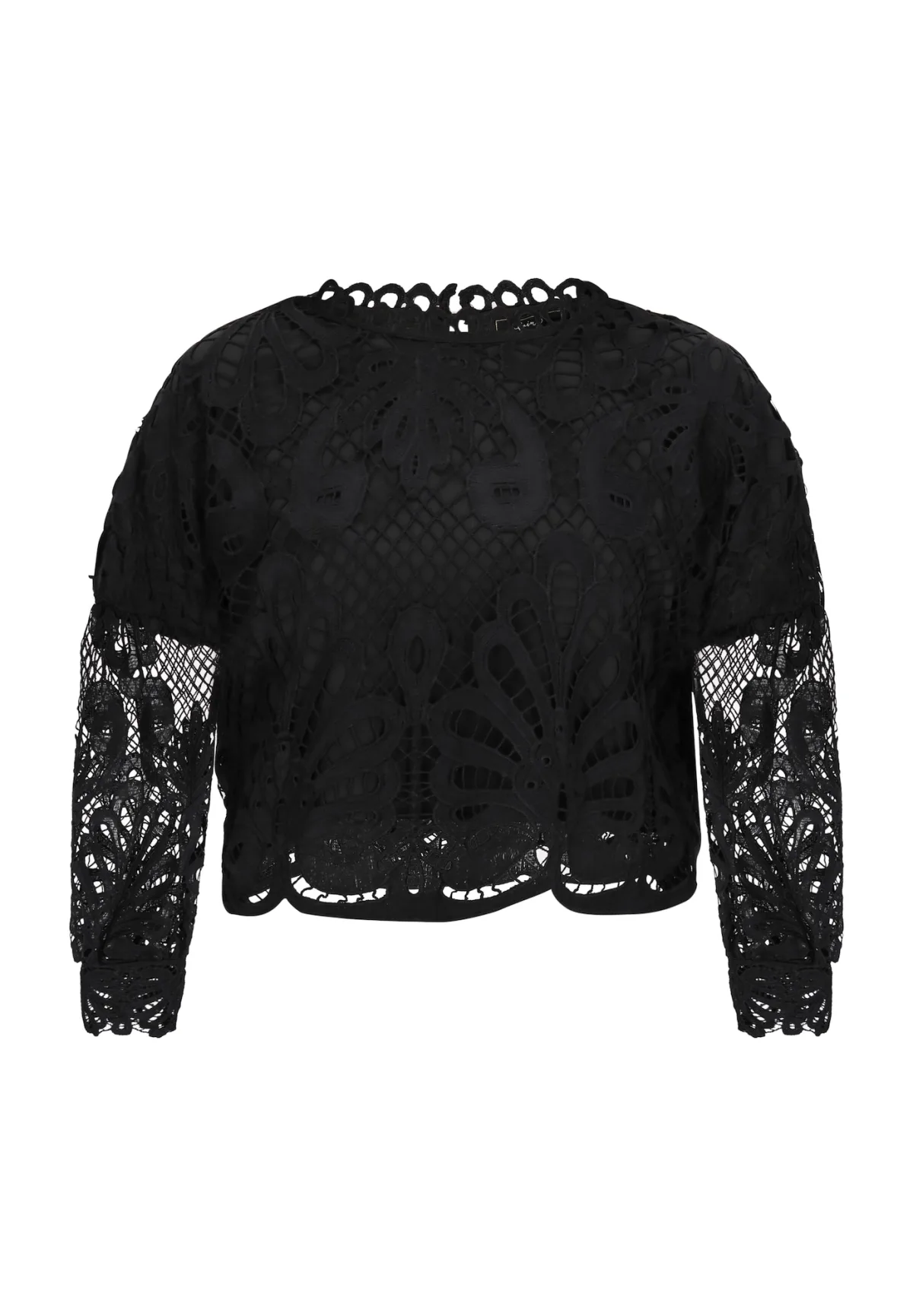Blouse type: Blouseshirt; Design: Asymmetrische zoom, Pofmouwen; Type sluiting: Knoopsluiting; Materiaal: Viscose; Motief: Effen; Kraag: Zonder kraag; Details: Cut-outs, Kant, Borduursels; Extra’s: Op staal naden; Pasvorm: Normale pasvorm; Armlengte: Lange mouw; Lengte: Normale lengte