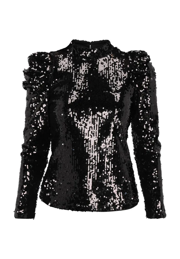 Blouse type: Blouseshirt; Design: Gevoerde zoom/rand, Keyholesluiting; Type sluiting: Knoopsluiting; Motief: Effen; Kraag: Opstaande kraag; Details: Cut-outs, Pailletten, Gedrapeerd; Extra's: Glitterend; Pasvorm: Normale pasvorm; Armlengte: Lange mouw; Lengte: Normale lengte