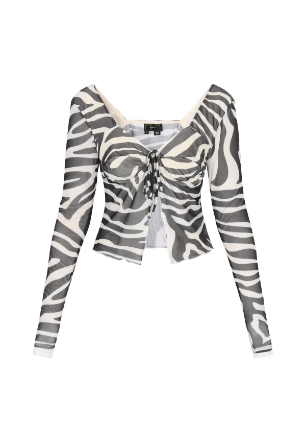 Blouse type: Wijde blouse; Type sluiting: Snoersluiting; Motief: Dierenprint; Extra's: All-over patroon, Gladde stof; Pasvorm: Aansluitende pasvorm; Armlengte: Lange mouw; Lengte: Normale lengte